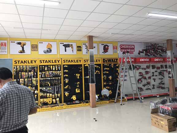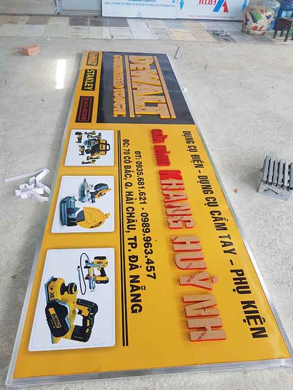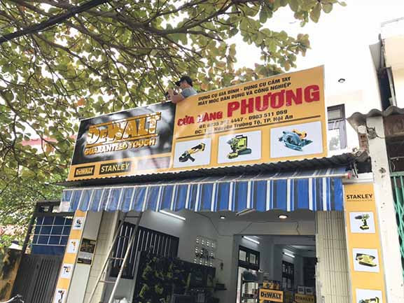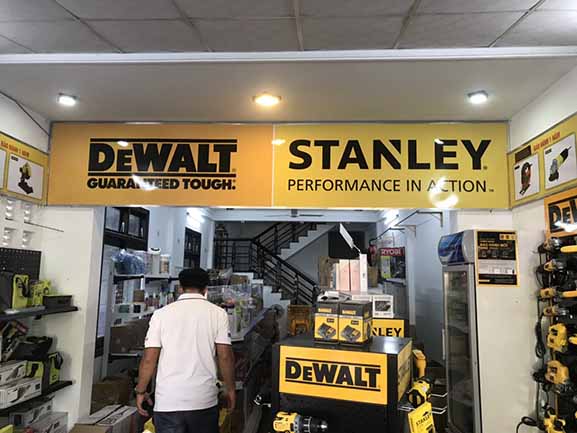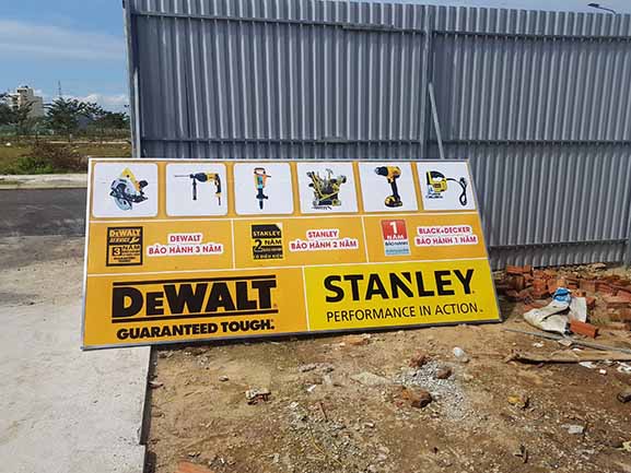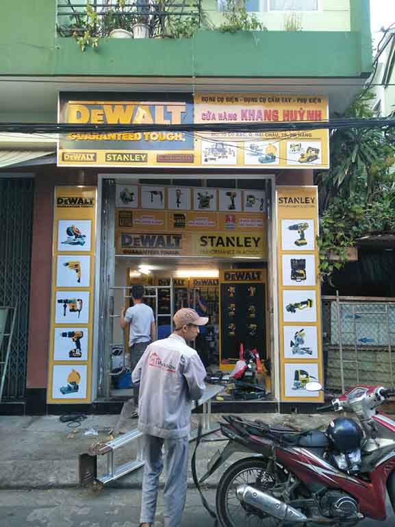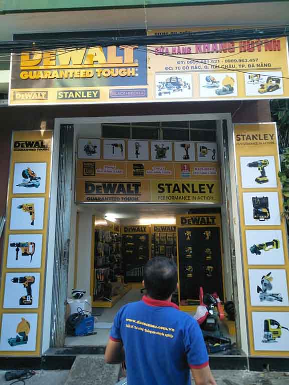 Thi công, làm bảng hiệu quảng cáo tại Đà Nẵng và các tỉnh khu vực miền trung cho hãng Dewlt – Stanley là công việc thường xuyên với đơn vị chúng tôi, do các hãng này mới thâm nhập thị trường Việt Nam, nên vấn đề quảng bá thương hiệu được họ xem trọng rất cao, các hãng này lựa chọn kỹ các đối tác sản xuất bảng hiệu quảng cáo cho họ để lắp trên các đại lý ở Đà Nẵng và Miền trung, đặc thù của hãng này có màu thương hiệu vàng rất bắt mắt người nhìn, và tài trợ khắp các cửa hàng bày bán sản phẩm nên tạo sự đồng đều, hút mắt người khác, gây ấn tượng cực mạnh.